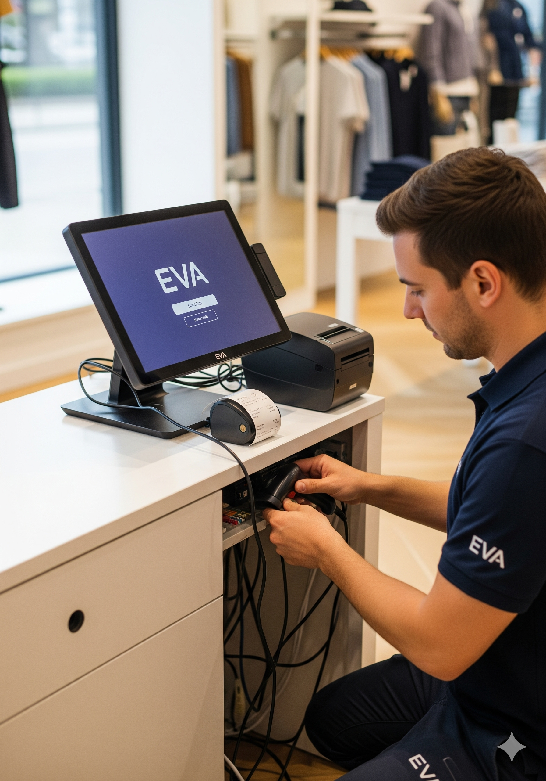 ✔ EVA POS Installation & Setup – Seamless implementation of cash register systems for smooth store operations.